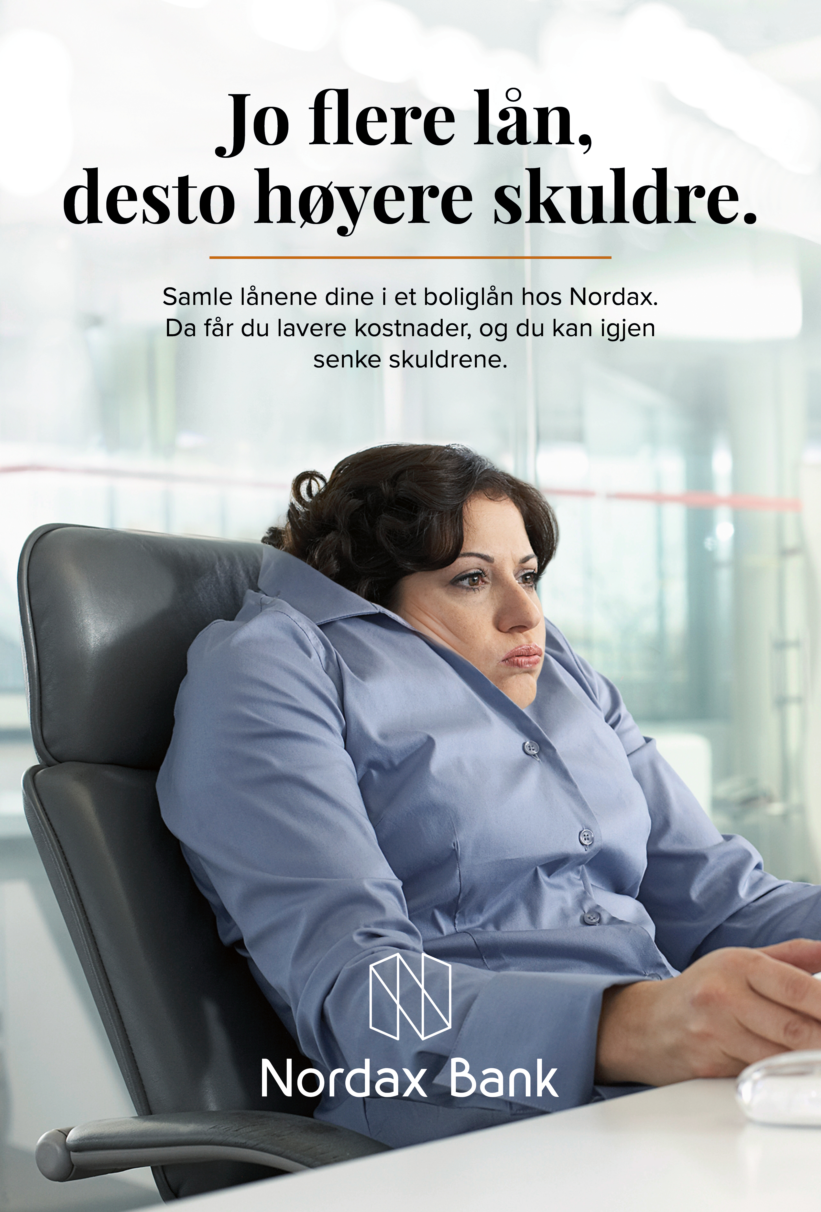 En av tjenestene Nordax tilbyr er refinansiering av lån. Banken ønsket derfor å snakke om fordelene ved å samle flere lån til ett. Vår løsning ble å dramatisere hva dyre lån kan gjøre med deg. Rent fysisk.
